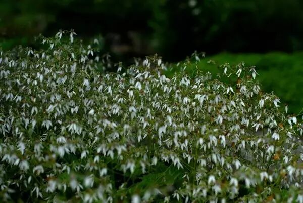 耐阴耐湿开着翅膀样小白花的虎耳草、百合科多年生开紫色穗花的麦冬、大叶吴风草等,非常适合耐阴的林下。
