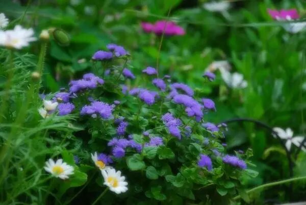 洋甘菊、醉蝶花、向日葵、藿香蓟、长春花等,更常见是鸡冠花、凤仙花、一串红、牵牛花和太阳花。。。小时候还是能经常见到的。