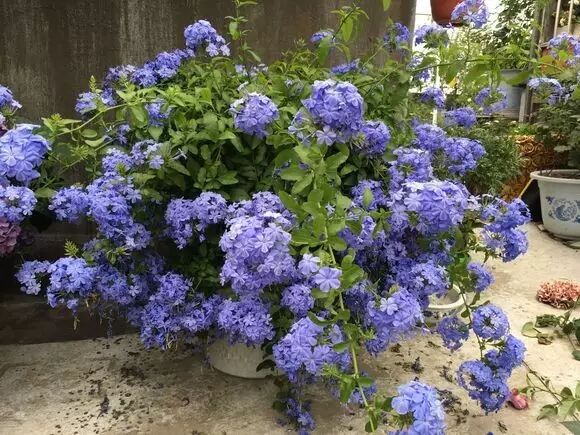 蓝雪花蓝紫色的花朵,夏天开花,带来丝丝清凉,而且,它特别耐热,喜欢阳光,所以,夏天基本不太需要遮阴,夏天室外养的话,勤浇水,2-3天浇一次。