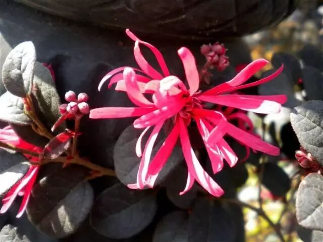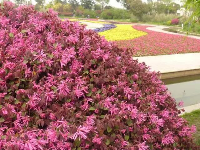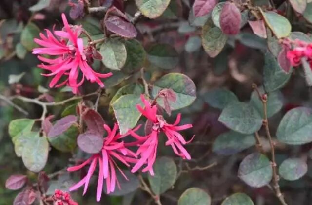 重新认识一下:这种花叫红花檵木,是特产于湖南的珍贵乡土彩叶观赏植物。比较喜光,稍耐阴,阴时叶色容易变绿。