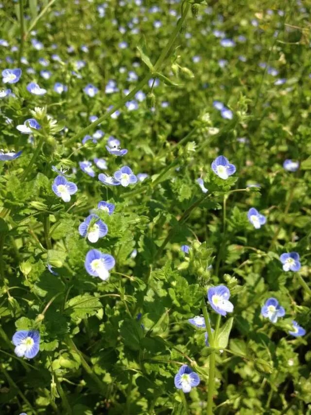 重新认识一下:这些花是波斯婆婆纳,又叫阿拉伯婆婆纳,是一种草本植物,有柔毛,一般高10至50厘米,是田间、路旁早春时节常见的杂草。